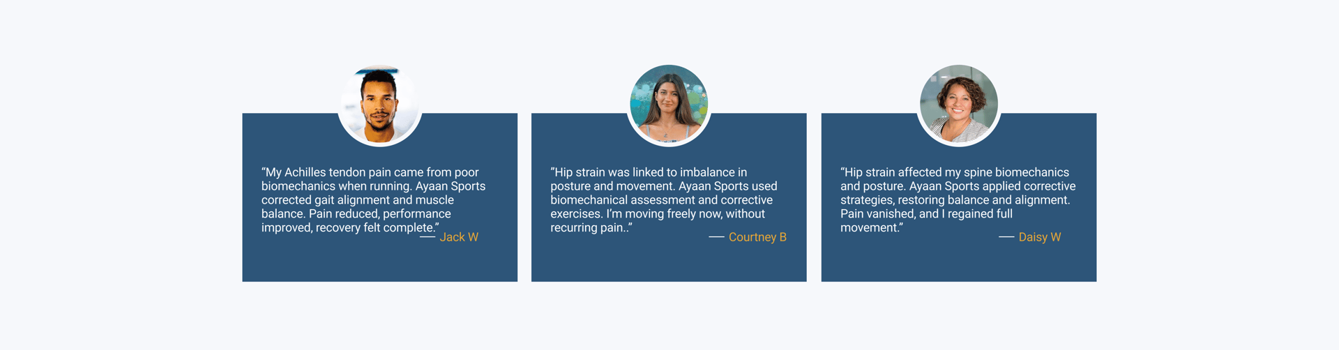 Hip strain causes pain and limits movement from muscle overstretching. Ayaan offers personalised physiotherapy to relieve discomfort and support recovery for a longer term.